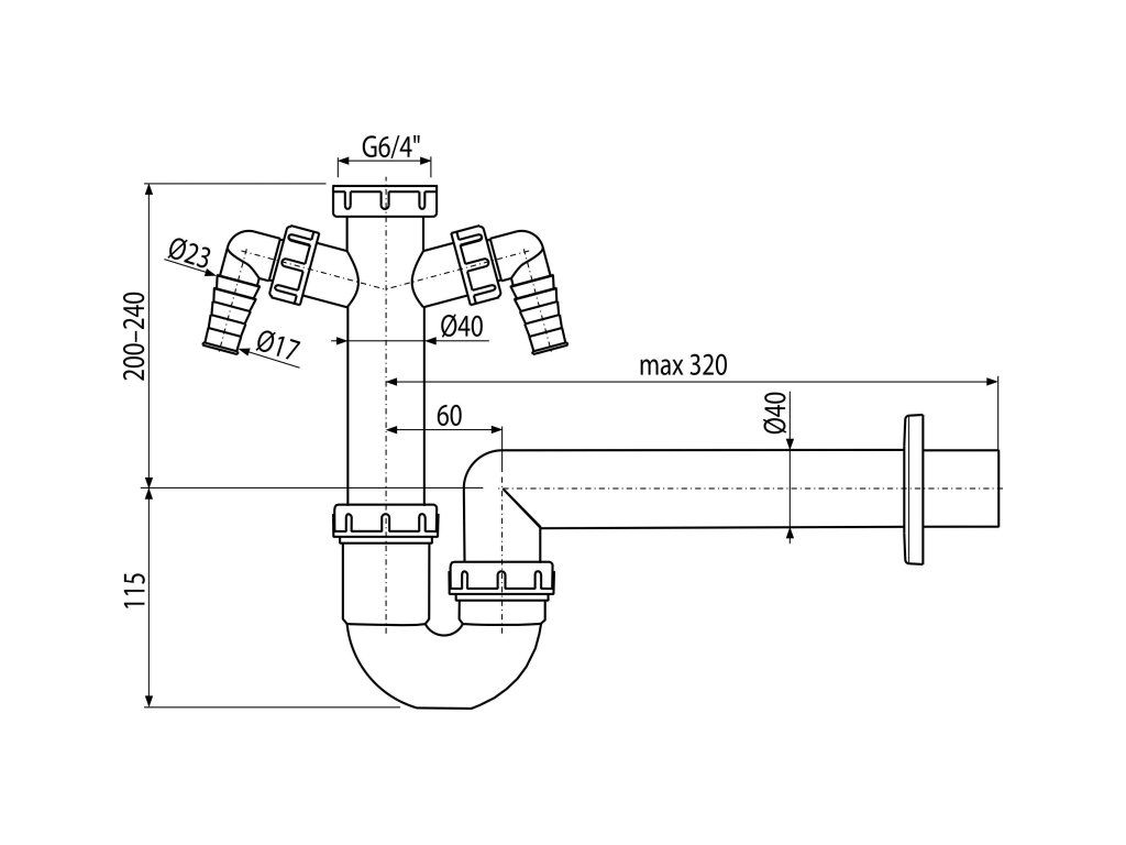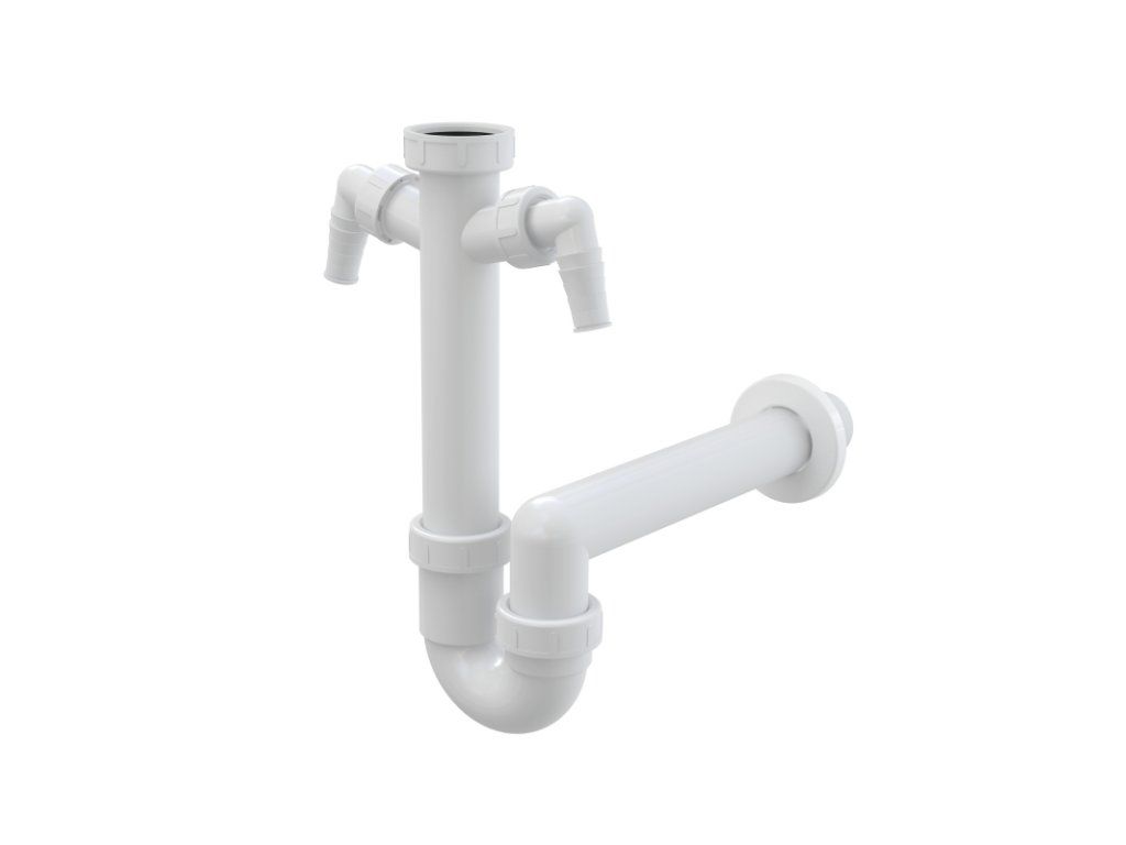 Sifon trubkový dřezový DN 40 s dvěma přípojkami Ø 17–23 mm a převlečnou maticí G 6/4" A82-DN40
