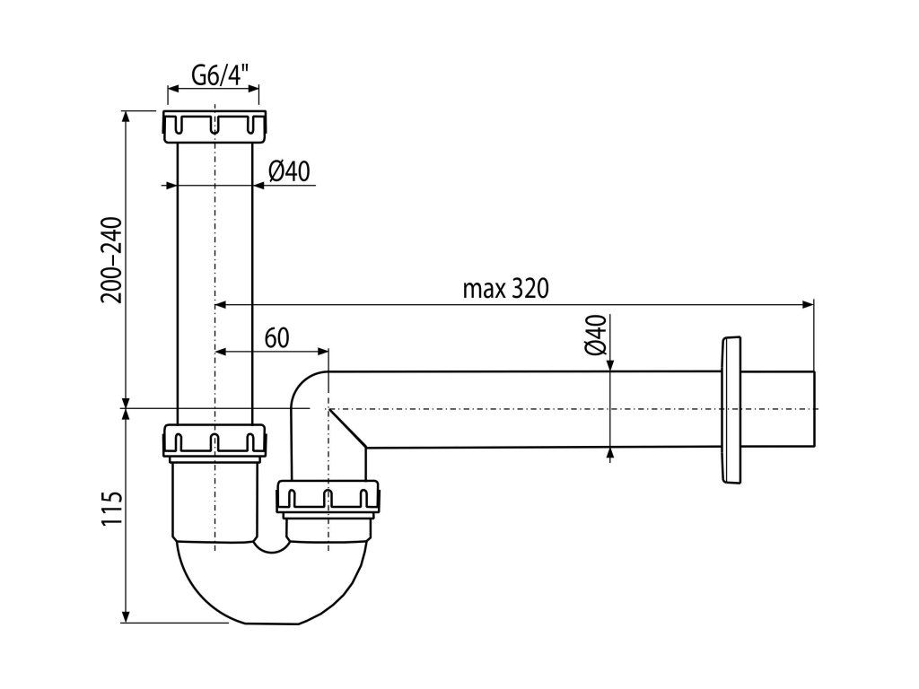 Sifon trubkový dřezový DN 40 s převlečnou maticí G 6/4" A80-DN40