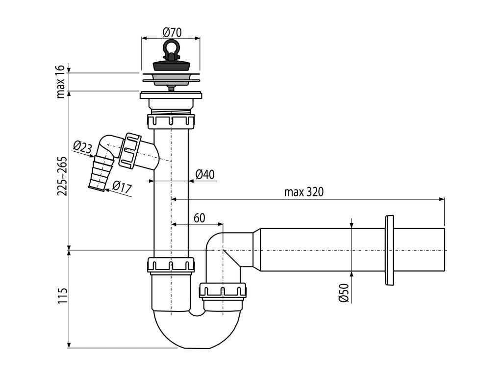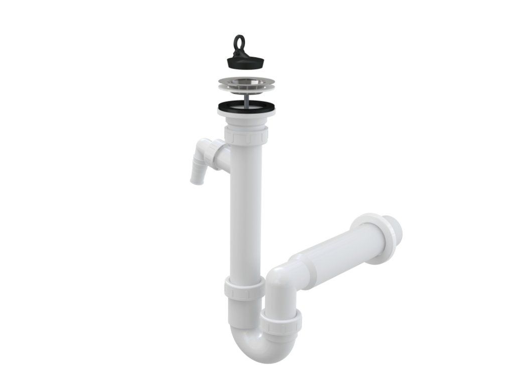 Sifon trubkový dřezový DN 50 s nerezovou mřížkou Ø 70 mm a přípojkou Ø 17–23 mm, pryžová zátka A810-DN50