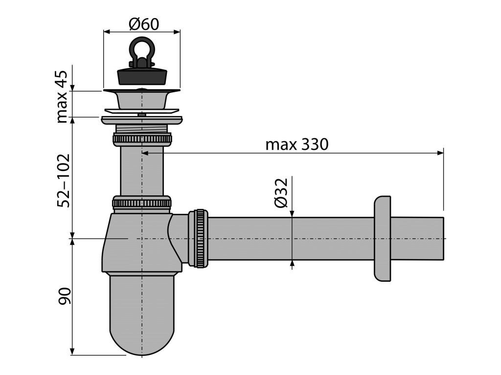 Sifon umyvadlový DN 32 s výpustí G 5/4", pryžová zátka, kov, chrom-lesk A437