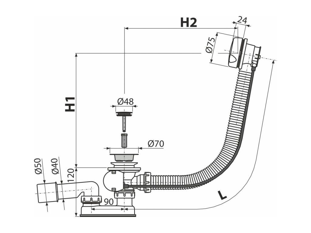 Použití:Pro odtok vody z vany do odpadu
