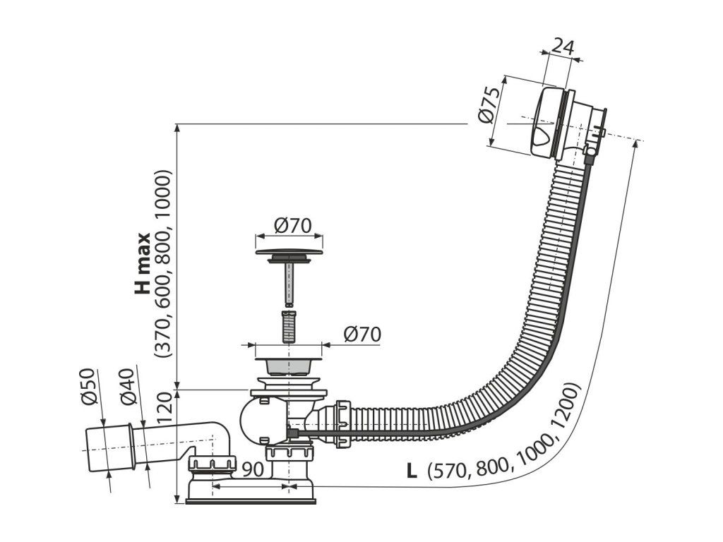 Sifon vanový automat, délka 100 cm, plast, bílá-lesk A51BM-100