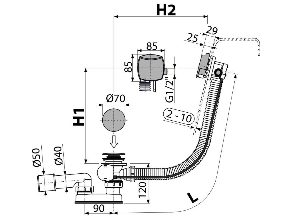 Použití:Pro napouštění vany přepadem