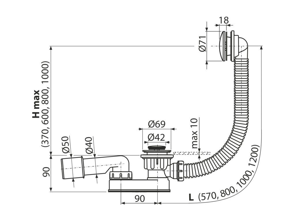 Délka vanového sifonu 57 cm