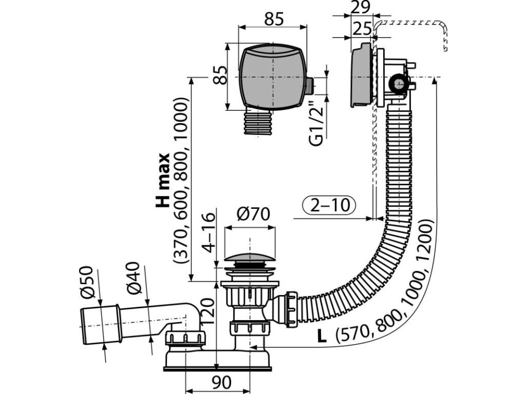 Délka vanového sifonu 80 cm