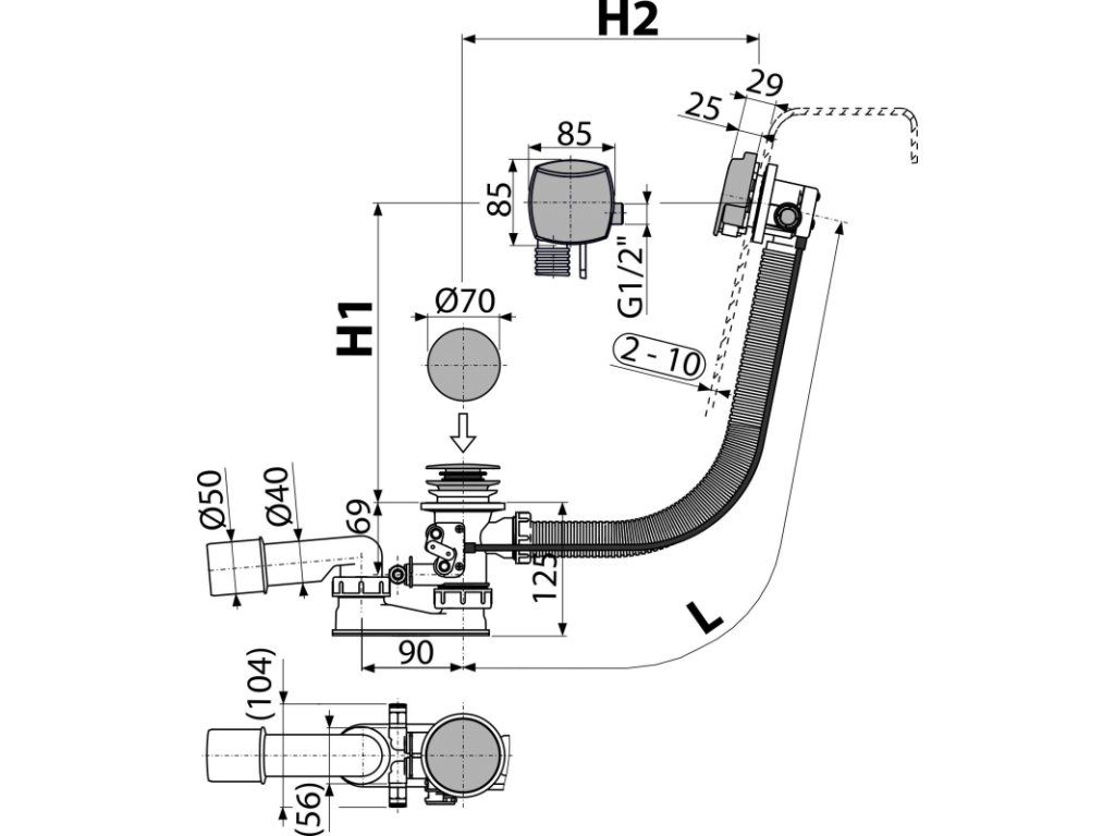 Součástí sifonu je mechanismus, který při otevření výpusti současně otevře ventily, kterými odtéká zbytková voda ze systémů masážní vany