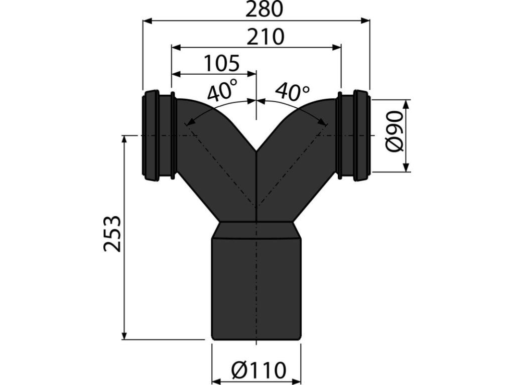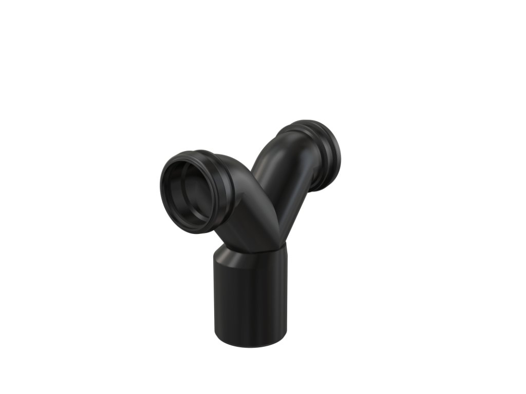 Spojovací dvojité koleno 90° k závěsnému WC, redukce 2×DN 90 × DN 110, délka 253 mm, PE, černá M909
