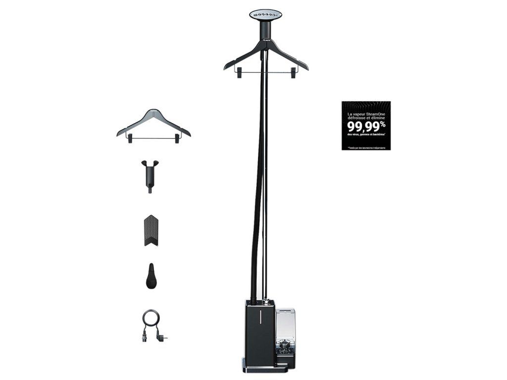 SteamOne EUES200B je stylový a výkonný napařovač oděvů s unikátní technologií Start Stop a povrchovou úpravou Soft touch. Žehlí napařovací metodou, která je k oděvům a materiálům šetrnější než klasická žehlička. Napařovač oděvů SteamOne s výkonem 2000 W žehlí látku rychleji a šetří místem, napařování oděvů probíhá bez použití žehlicího prkna přímo na ramínku. Pomocí několika málo tahů perfektně vyžehlí i jemné tkaniny a je skvělým řešením pro odstranění záhybů ze všech druhů látek. SteamOne je připraven k použití za pouhých 45 sekund a je vybaven velkou nádržkou na vodu o objemu 1,2 litru. Napařovací systém navíc odstraňuje pachy a dezinfikuje. Model SteamOne EUES200B je vyrobený ve Francii. SteamOne to nejlepší pro Vaše oděvy.