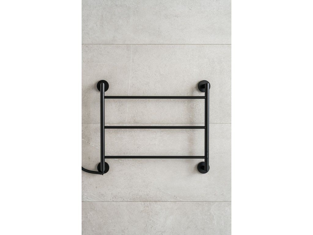 Elektrický sušák ručníků s nízkou spotřebou energie je dodáván v provedení leštěná nerez nebo černá.