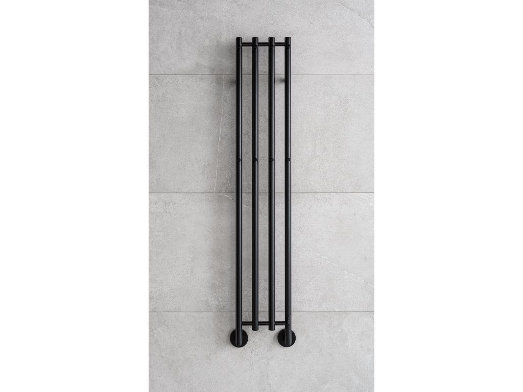Elektrický sušák ručníků s nízkou spotřebou energie je dodáván v provedení leštěná nerez nebo černá.