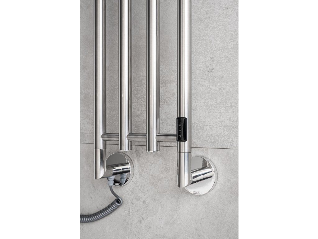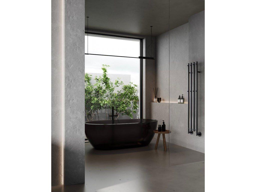 Elektrický sušák ručníků s nízkou spotřebou energie je dodáván v provedení leštěná nerez nebo černá.