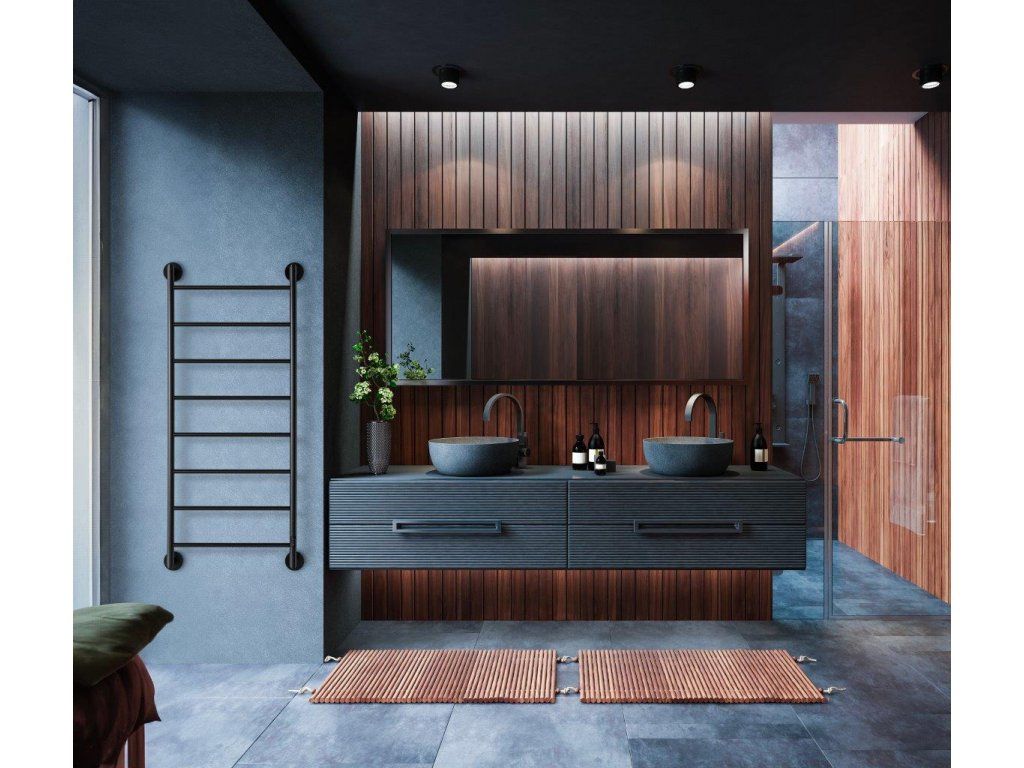 Elektrický sušák ručníků s nízkou spotřebou energie je dodáván v provedení leštěná nerez nebo černá.