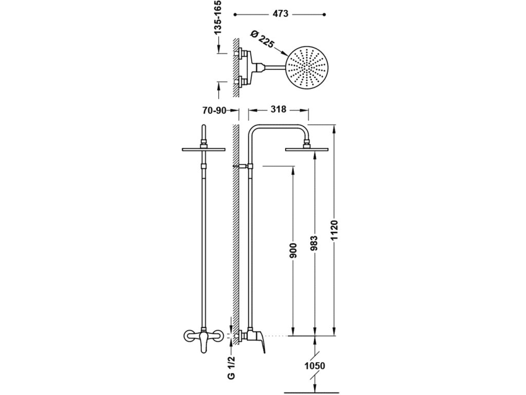 - Pevná sprcha s průměrem 225 mm. s kloubem