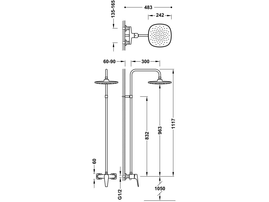 - Pevná hlavová sprcha 242x242 mm. s kloubem