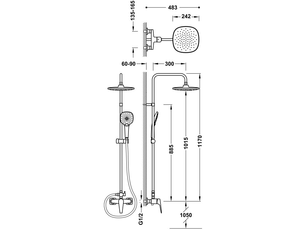 LaVilla baterie CANIGO PLUS TRES chrom sprchový nástěnný set s pákovou baterií, ruční a hlavovou sprchou 242mm LA21819101Obsahuje: