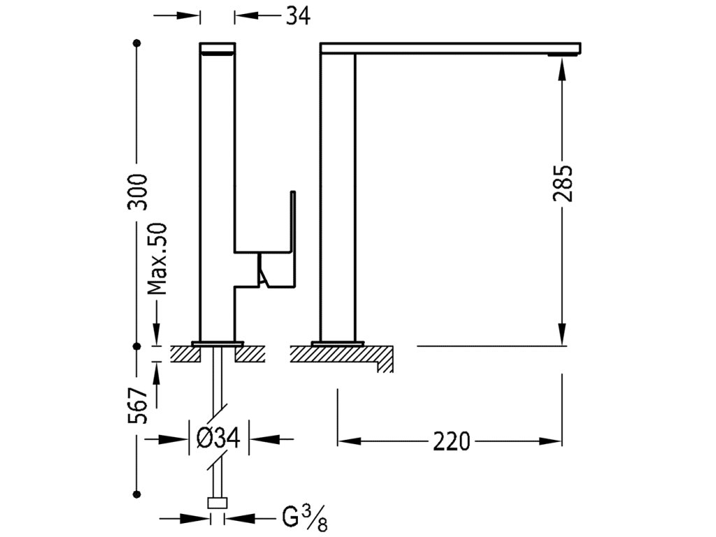TRES CUADRO černá-mat umyvadlová baterie 00648501NMDRamínko 34x10 mm.