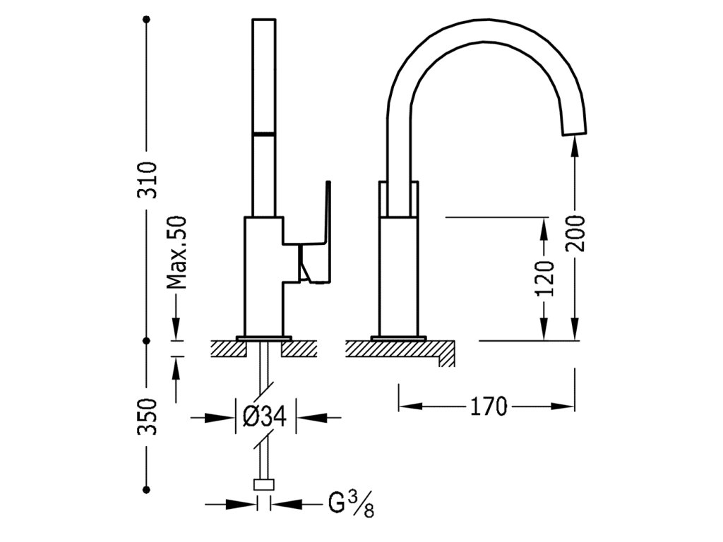 TRES CUADRO chrom umyvadlová baterie 106606Ramínko 22x22 mm.