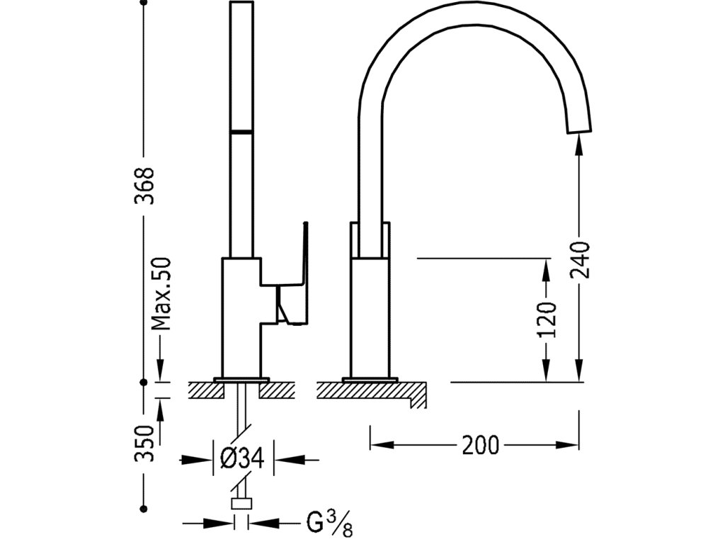 TRES CUADRO chrom umyvadlová baterie 106607Ramínko 22x22 mm.
