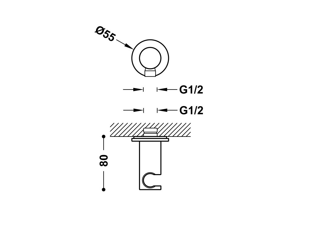 Tres Držák sprchy chrom s přípojem vody, kulatý, kulatá růžice, TRES 21518201přívod vody 1/2" s předností snadné instalace pomocí nasazení na čep.