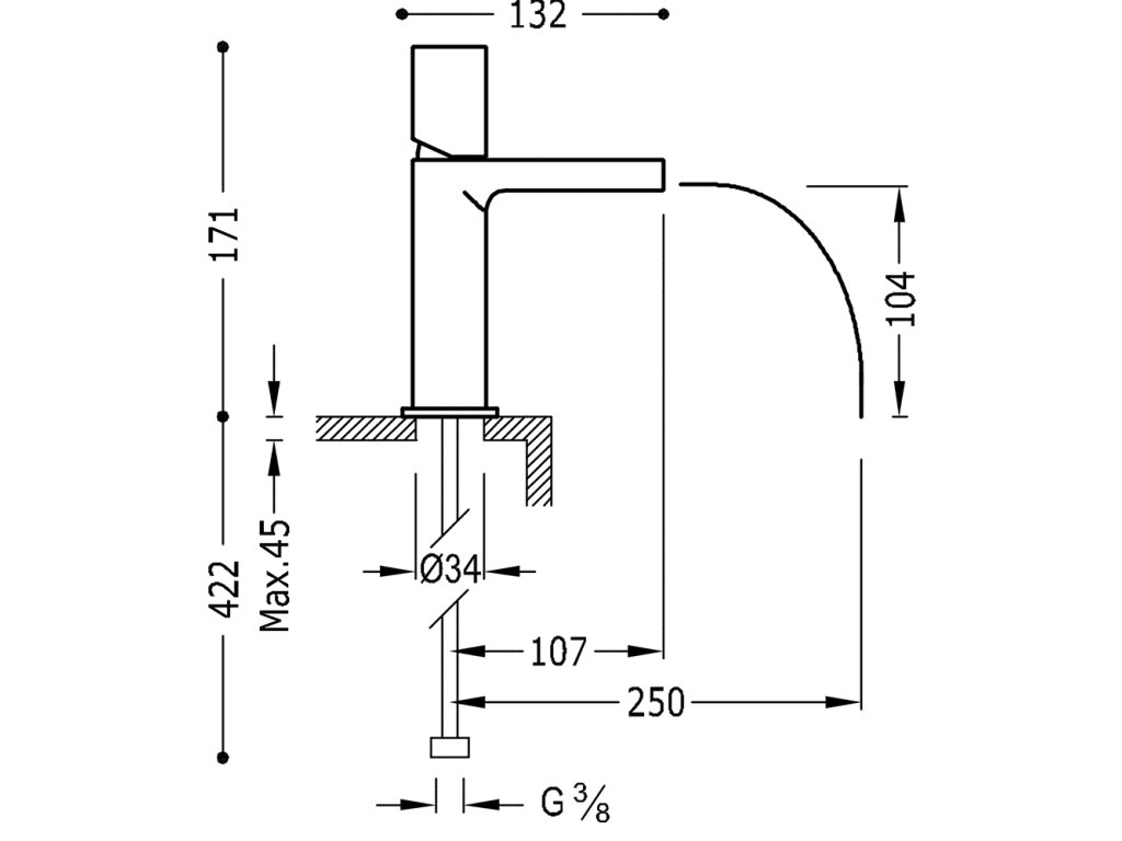 TRES LOFT chrom umyvadlová baterie 20011002Ramínko s otevřeným vodopádem.