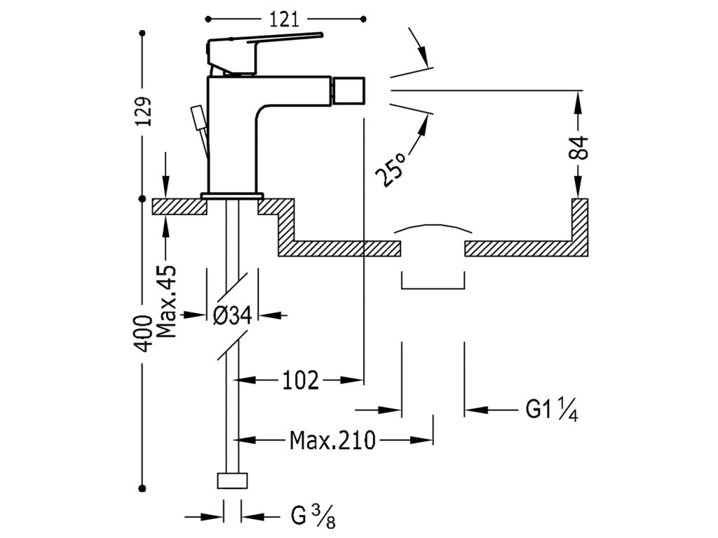 TRES PROJECT černá-mat Bidetová baterie 21112001NMDVčetně ventilu SIMPLE RAPID, výpust Click-Clack.