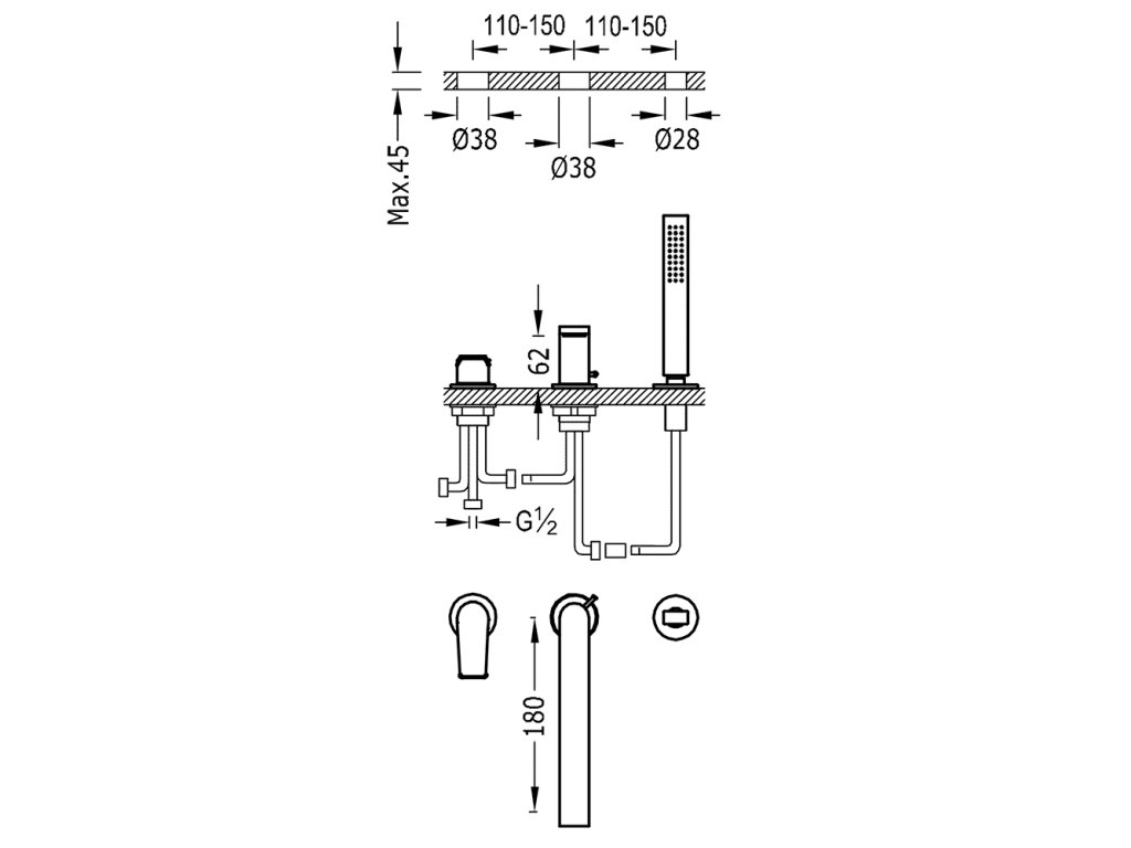 TRES PROJECT chrom Vanová baterie stojánková 21116101Výrobek obsahuje: