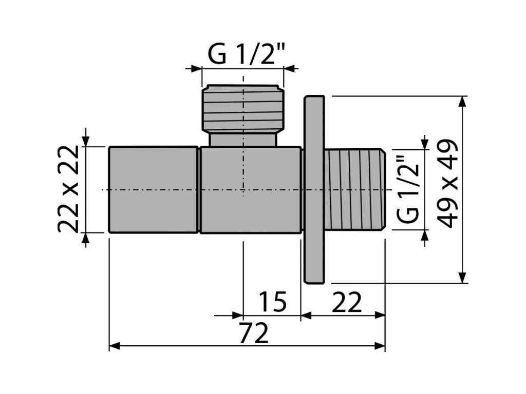Ventil rohový 1/2" × 1/2", hranatý, chrom-lesk ARV004