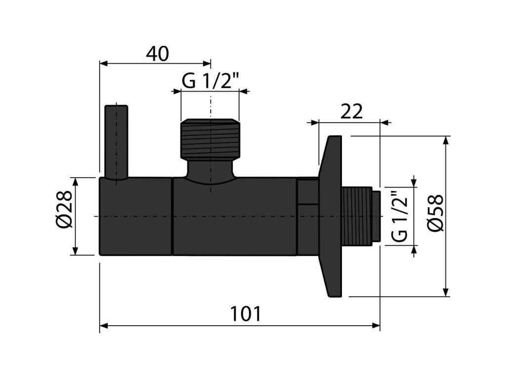 Ventil rohový s filtrem 1/2" × 1/2", kulatý, černá-mat ARV003-BLACK