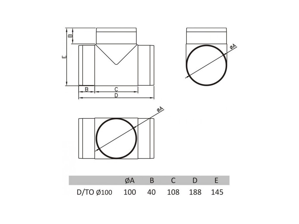 Ventilační.T-kus D/TO d100 plast TX411734POPIS VÝROBKU :