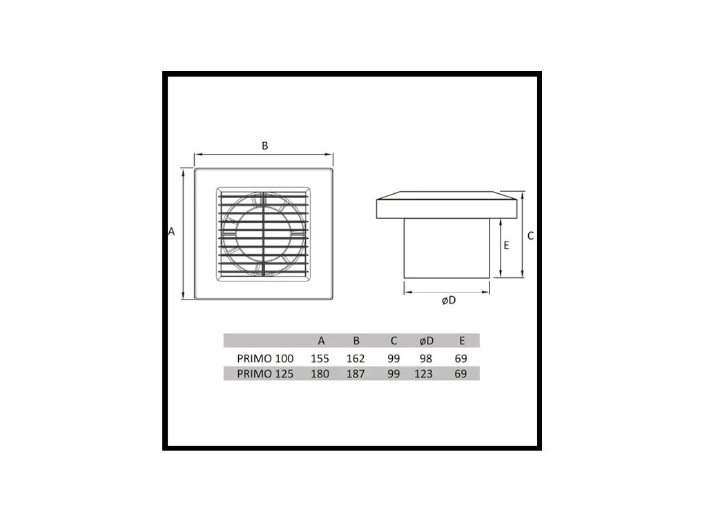 Ventilátor PRIMO base 100 AT -žaluzie+čas.spínač TX411042Domovní nástěnný axiální ventilátor s kuličkovými ložisky