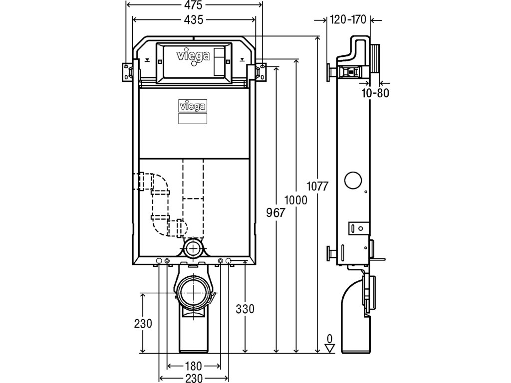 Viega Prevista Prevista Pure WC modul s přípojem na ventilátor 1070 mm model 851231Prevista Pure-WC-blok s přípojem na ventilátor 1077 mm