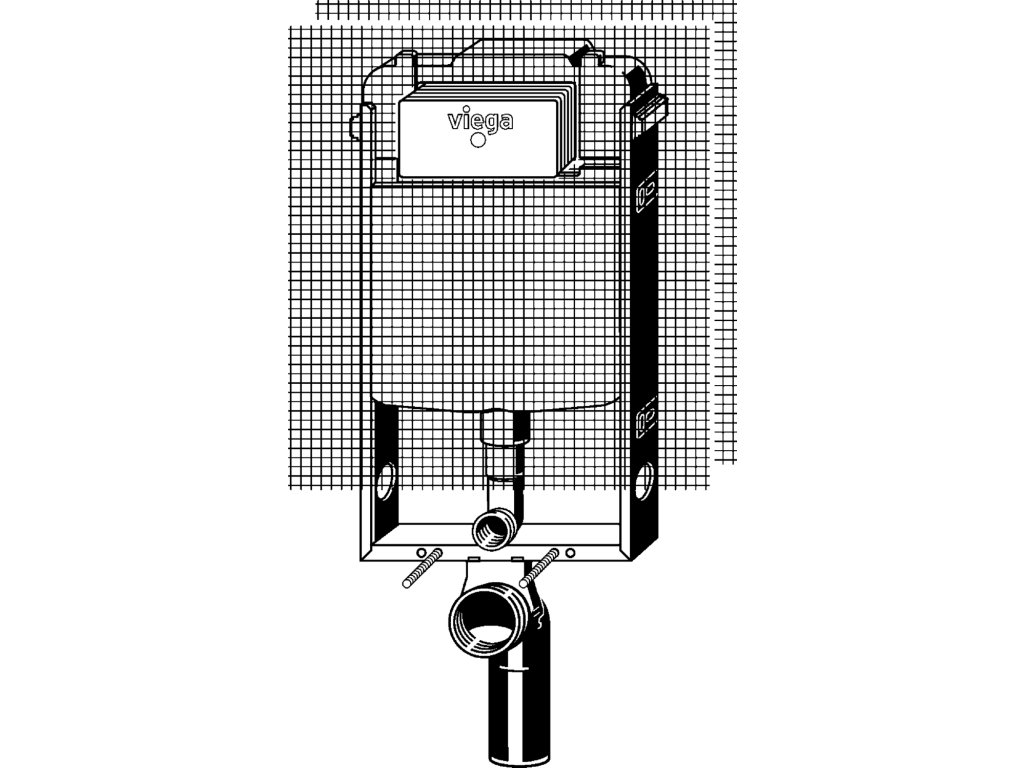 pozinkovaný rám, podomítková splachovací nádržka 3F, izolace proti kondenzované vodě bez halogenů pro podomítkové splachovací nádržky podle DGNB ENV1.2 kritérium QS4, připojovací souprava WC, upevňovací materiál pro blok a sanitární keramiku, ochrana proti stříkající vodě, přípoj vody R½ shora, připojovací oblouk WC DN90 z PE