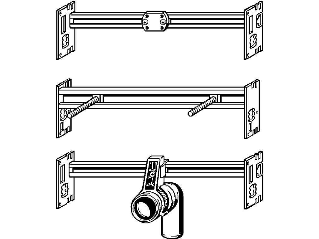 odhlučněné upevnění pro nástěnky Viega, odtokový oblouk DN50, samolepicí utěsňovací příruba, upevňovací materiál pro modul a sanitární keramiku