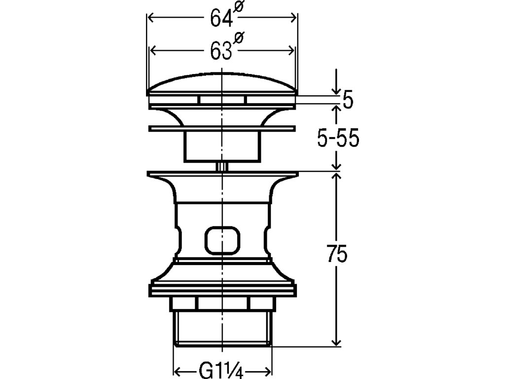 Viega výpusť umyvadlová doteková Klick kulatá s přepadem 5/4"x75mm chrom, mod.5433, 492 601