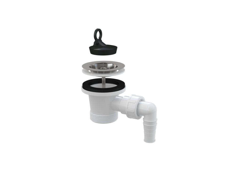 Výpust dřezová G 6/4" s přípojkou Ø 17–23 mm a nerezovou mřížkou Ø 70 mm, pryžová zátka A33P