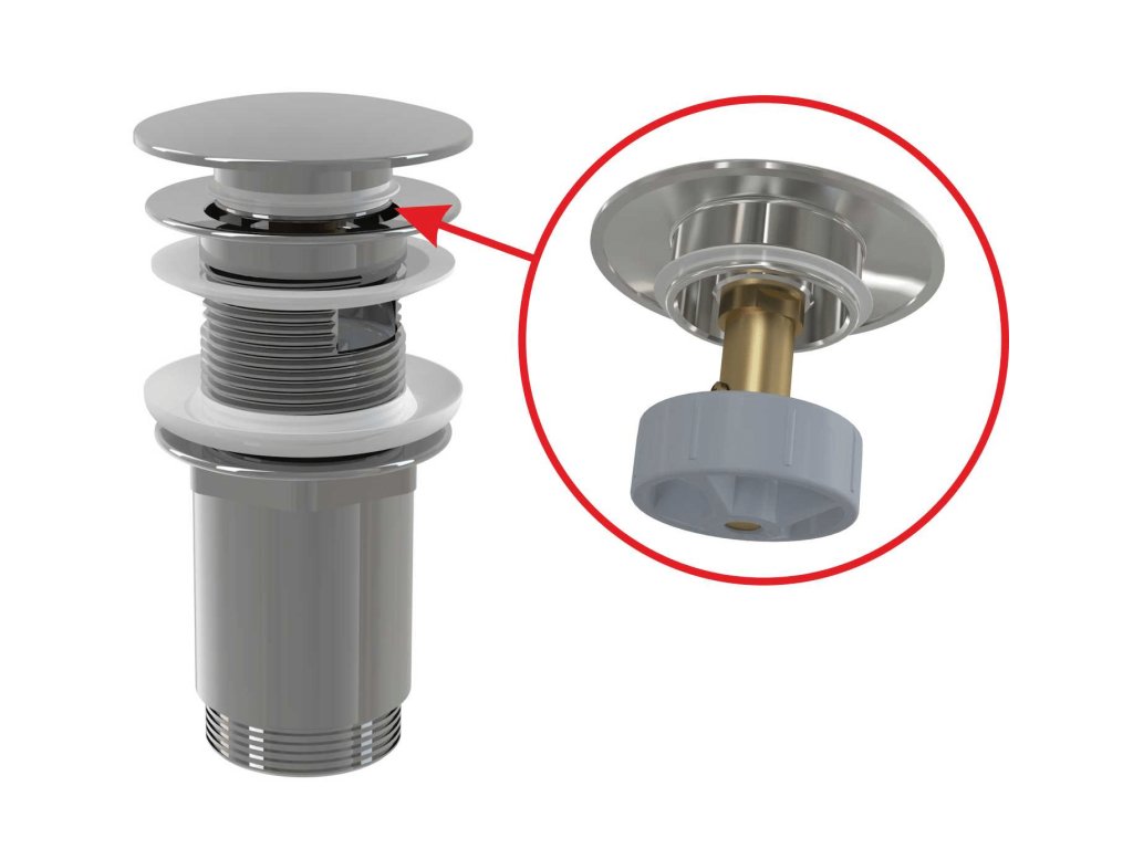 Výpust umyvadlová CLICK/CLACK G 5/4" s přepadem, velká zátka, kov, chrom-lesk A392C