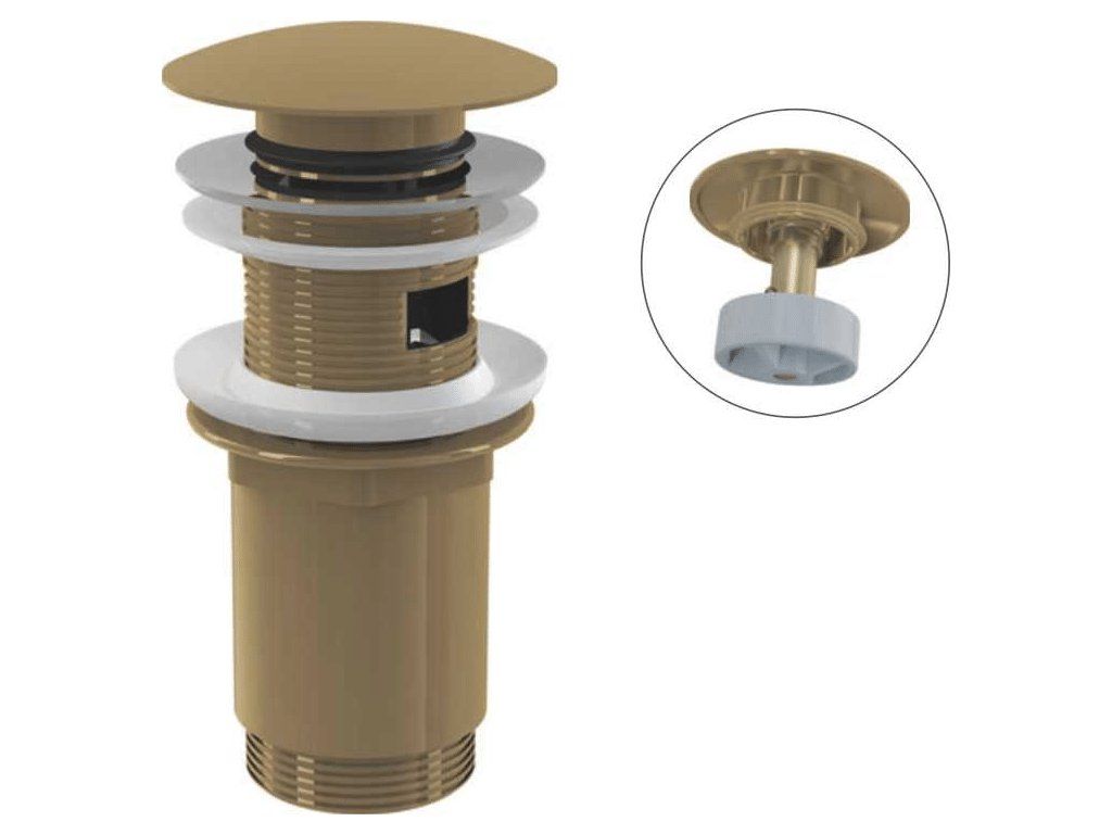 Výpust umyvadlová CLICK/CLACK G 5/4" s přepadem, velká zátka, kov, GOLD-kartáčovaný mat A392-G-B
