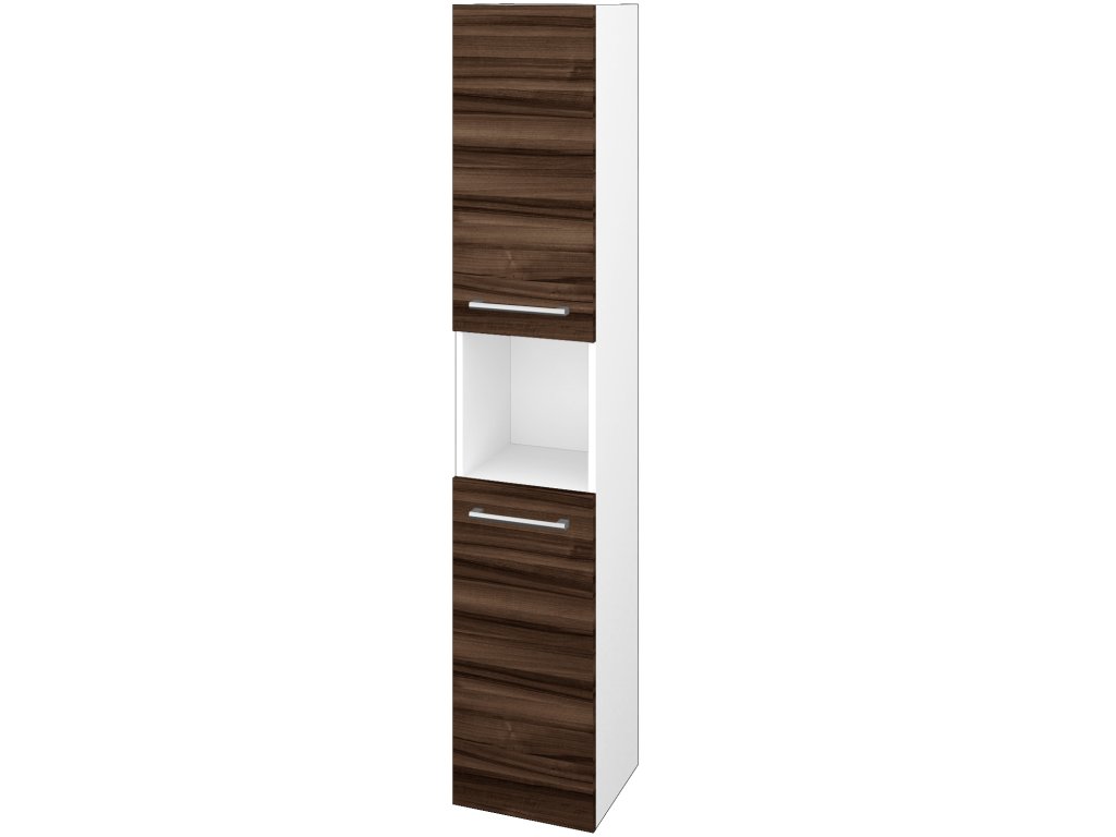 Vysoká skříň DOS SVD2O 35 je konstruována jako závěsná ve dvoudveřovém provedení a prostornou nikou uprostřed. Vnitřní prostory skříně jsou vybaveny čtyřmi skleněnými policemi, které si můžete libovolně polohovat.