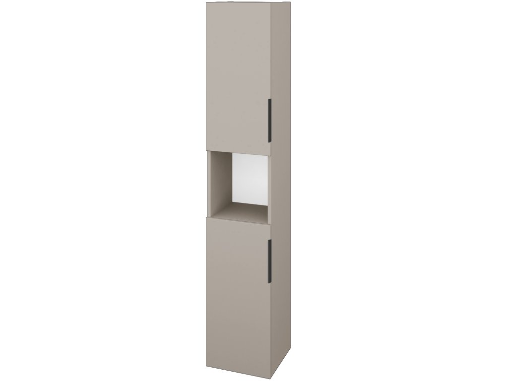 Vysoká skříň DOS SVD2O 35 je konstruována jako závěsná ve dvoudveřovém provedení a prostornou nikou uprostřed. Vnitřní prostory skříně jsou vybaveny čtyřmi skleněnými policemi, které si můžete libovolně polohovat.