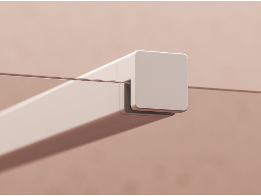 Sprchový kout Walk-In Corner s bílou povrchovou úpravou kovových částí. Doporučujeme instalovat přímo na podlahu se zabudovaným odtokovým žlabem nebo podlahovou vpustí. Sprchový kout je univerzální, při montáži si zvolíte pravou či levou orientaci vstupu. Balení obsahuje dvě pevné skleněné stěny s ustavovacím profilem a rohovým spojovacím profilem v bílém provedení.
