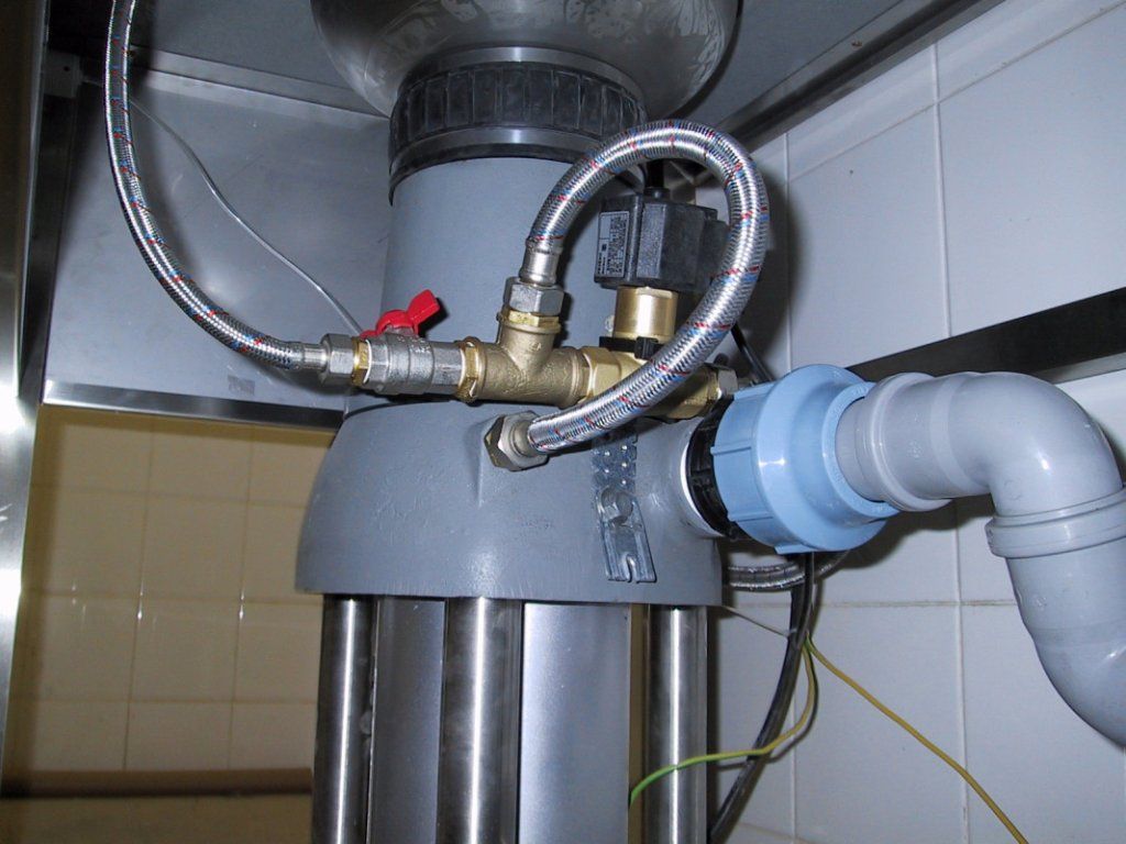 Při zapnutí drtiče musí být vždy zajištěn současně přívod vody, nejlépe automaticky elektromagnetickým ventilem. Provoz bez vody je nepřípustný, hrozí poškození těsnění.