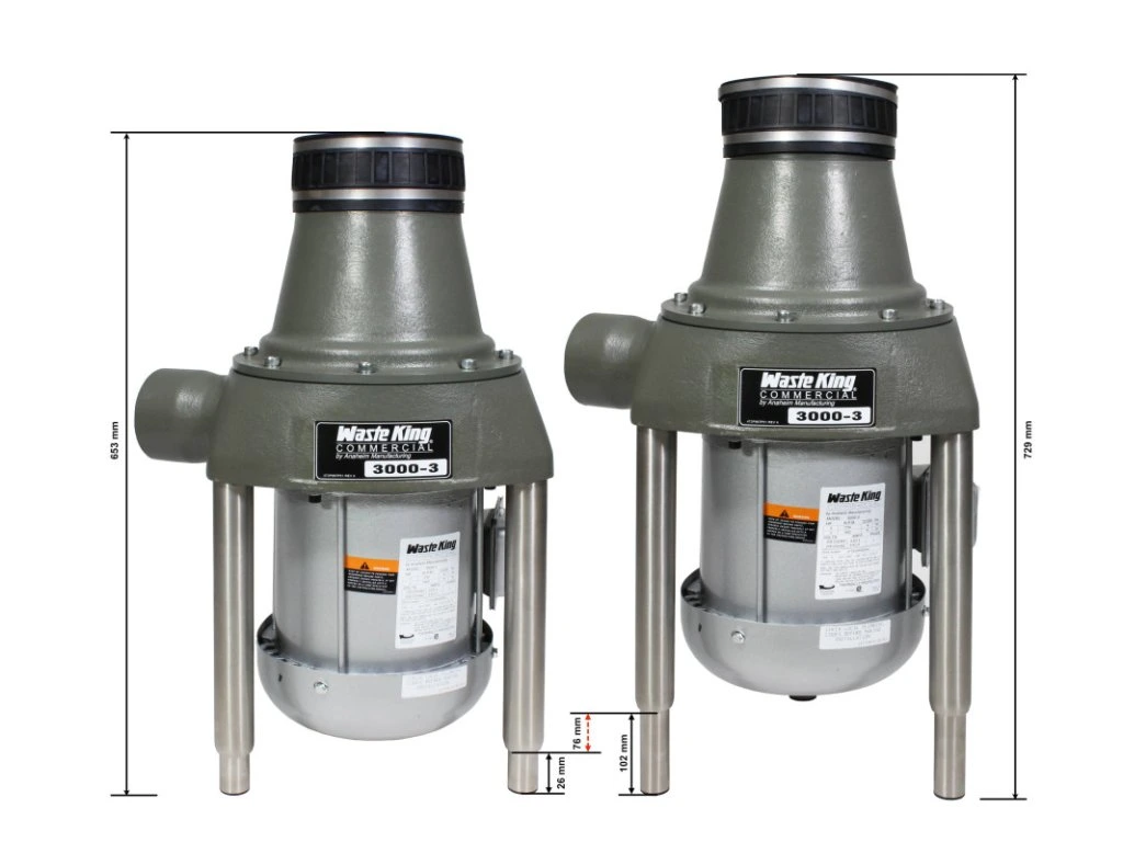 Komerční drtič kuchyňského odpadu Waste King Commercial 3000 o výkonu 3 HP (2240 W) je ideální do velkých hotelů, nemocnic, přípraven jídla a dalších míst, kde je zapotřebí zpracování vysokého objemu odpadů (do 4000 jídel ve špičce). Drtič je vhodný pro nepřetržitý provoz (24h).