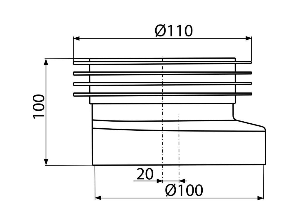 WC manžeta k volně stojícímu WC, excentrická 20 mm, 90–110 mm, délka 100 mm, PVC, bílé A990