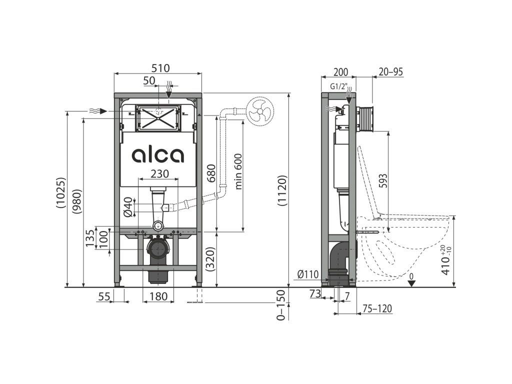 WC modul pro suchou instalaci (do prostoru), samostojící AM116/1120