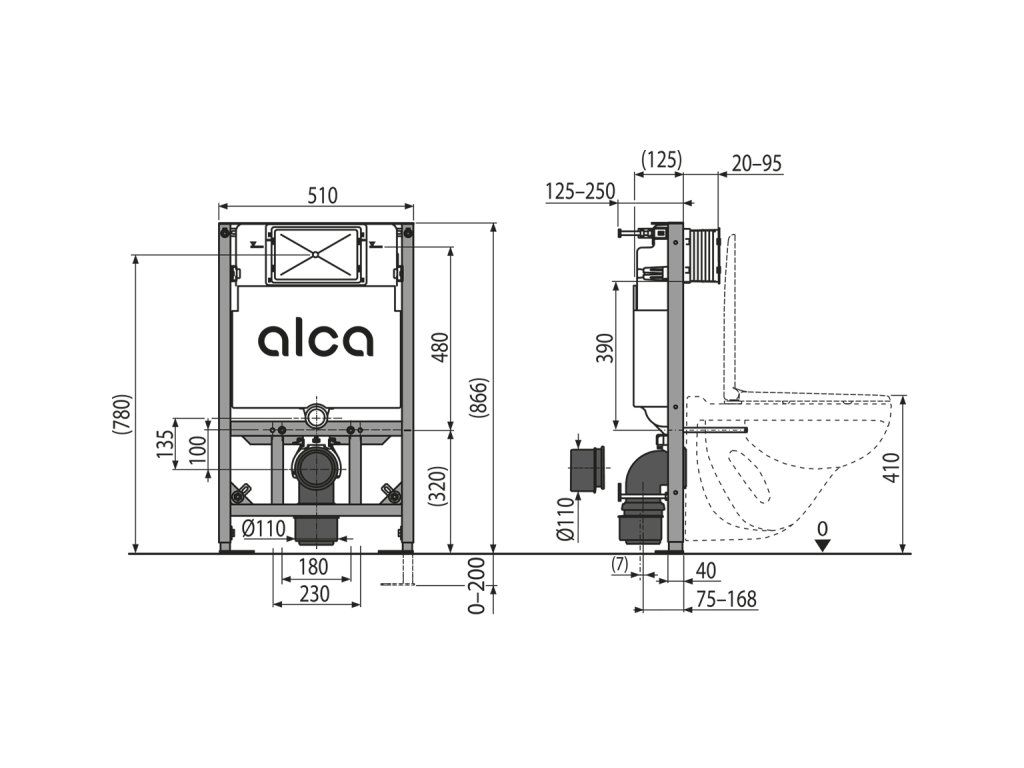 Pro montáž závěsného WC s připojovací roztečí 180 mm nebo 230 mm