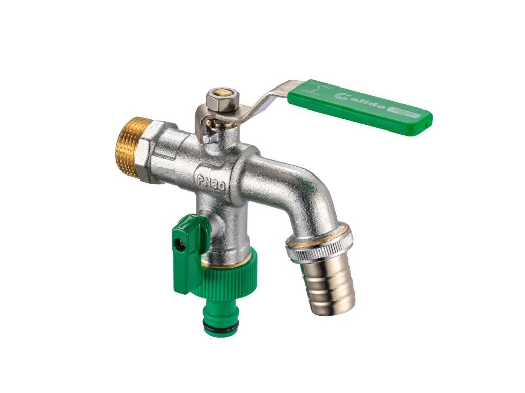 Kulový odběrný kohout Garden řady BIS s hadicovou spojkou, s rychlospojkou, s ucpávkou, pákou a maticí z nerezové oceli, poniklované(mosazné prvky, které jsou ve styku s vodou, nejsou pokryty vrstvou niklu - aktuální požadavky PZH). Mrazuvzdorný testovaný při -18°.