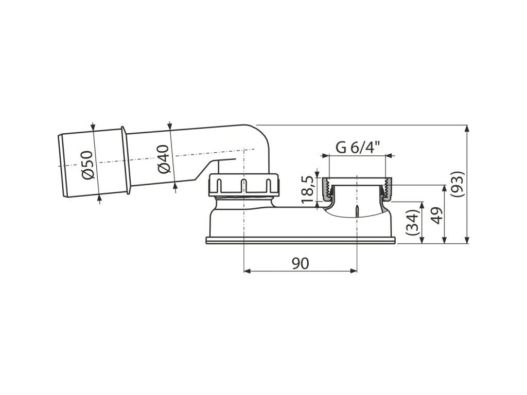 Zápachová uzávěra snížená pro vanové sifony G 6/4" × DN 40/50 A533-DN50
